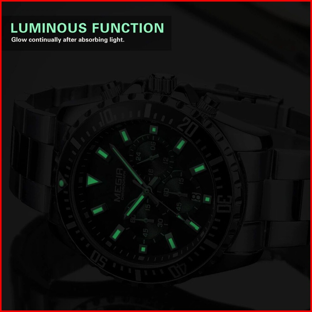 Megir 2064 Jam Tangan Pria Analog Chronograph Tali Stainless Luminous Mgos