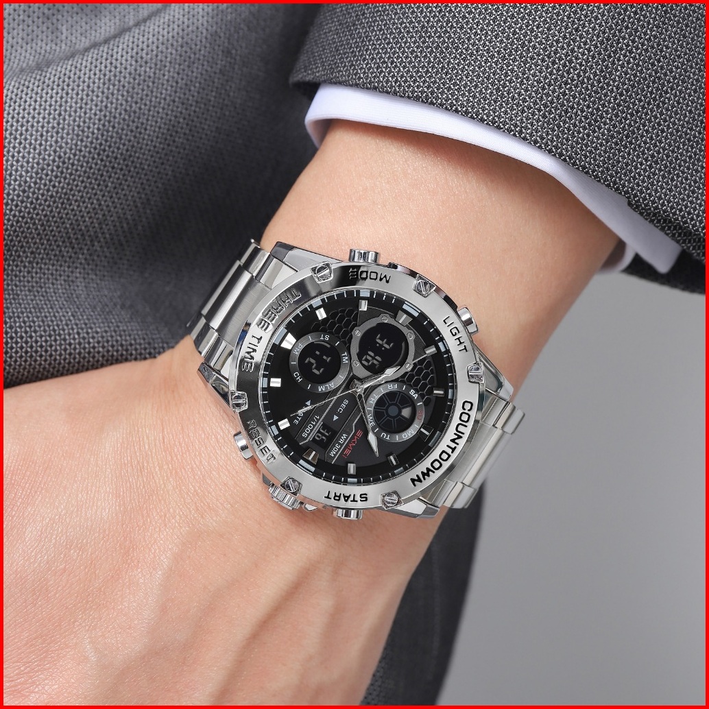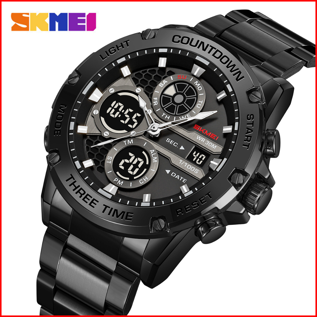 Skmei 2502 Jam Tangan Pria Digital Analog Tali Stainless Rantai Mgos