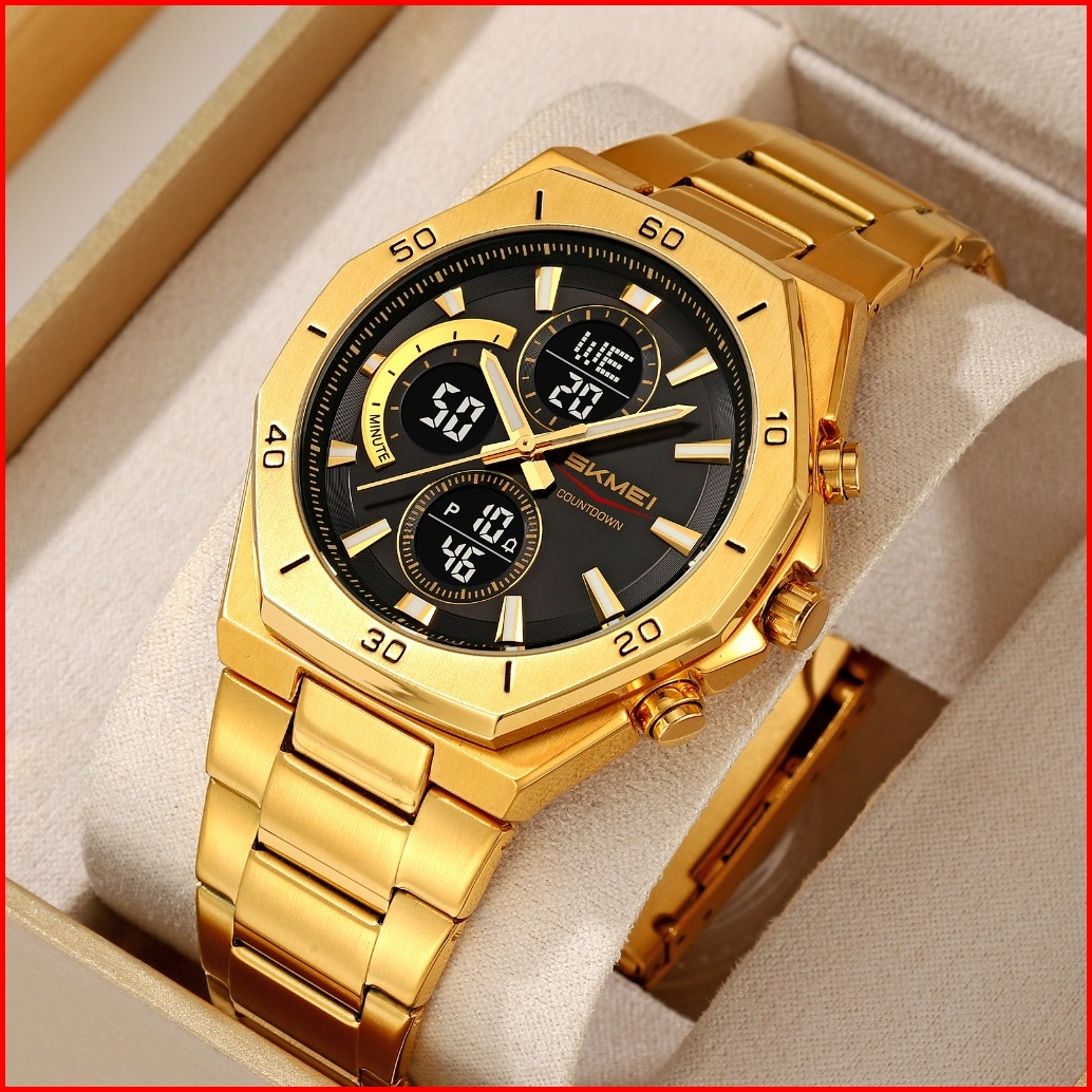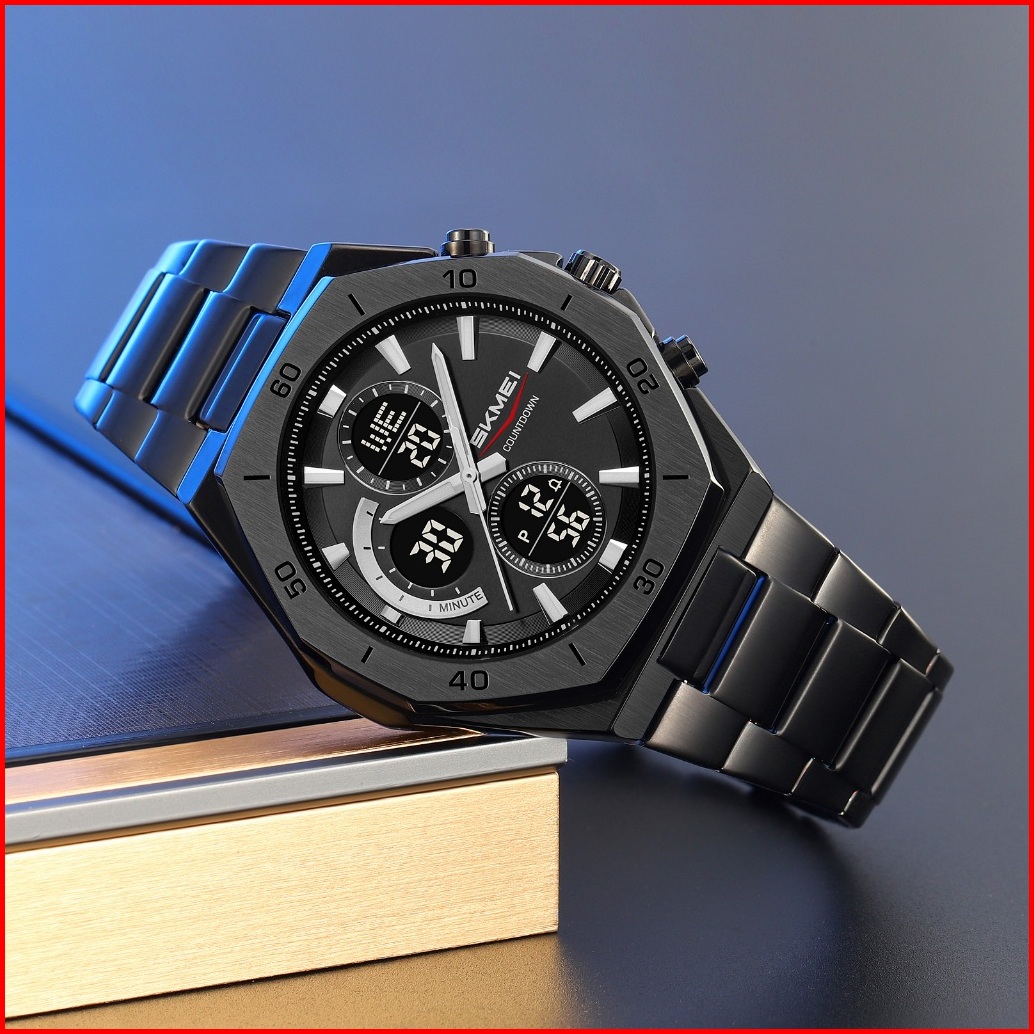 Skmei 2561 Jam Tangan Pria Digital Analog Tali Stainless Rantai Tahan Air Mgos