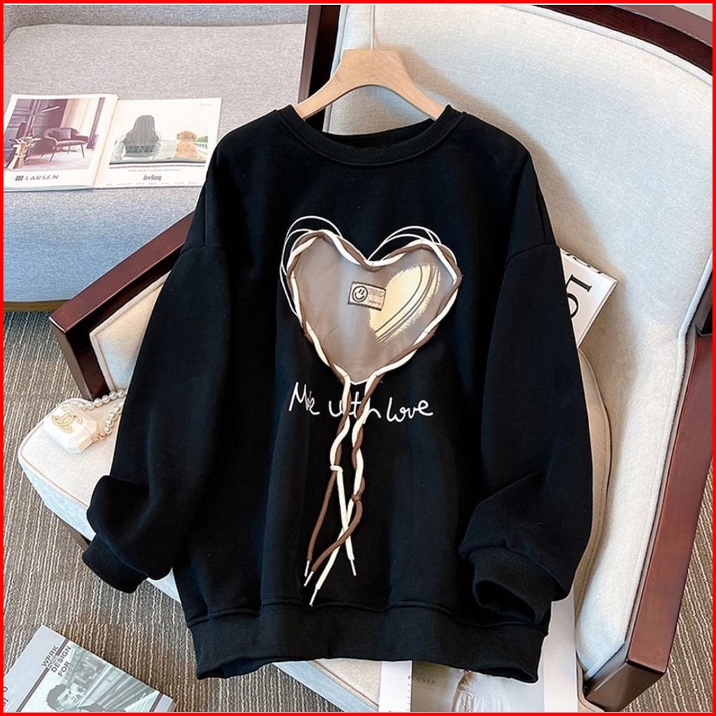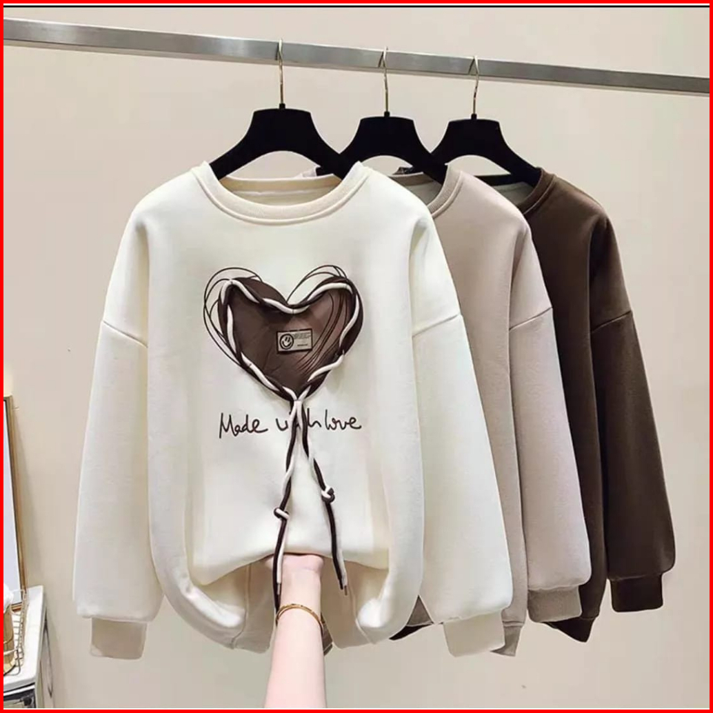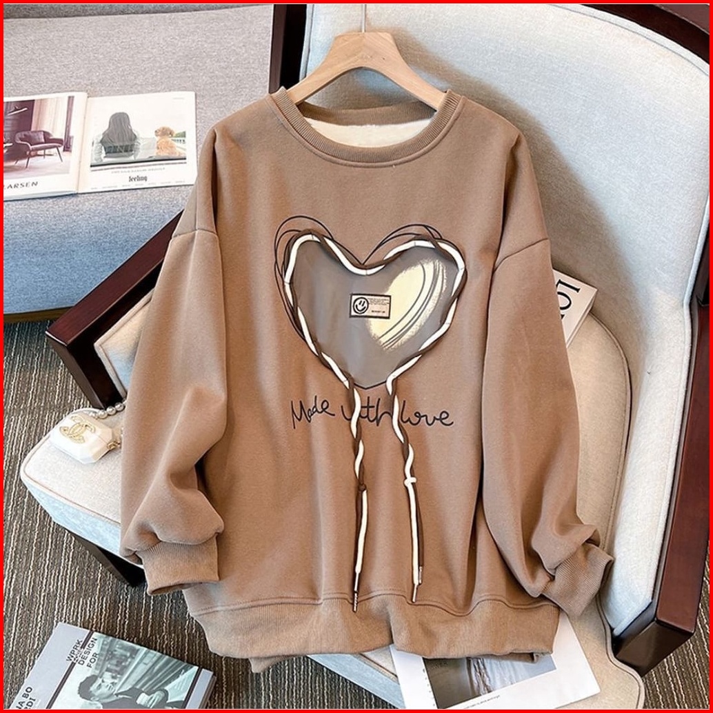 Made With Love Sweater Oversize Wanita - Crewneck Wanita Oversize - Sweatshirt
