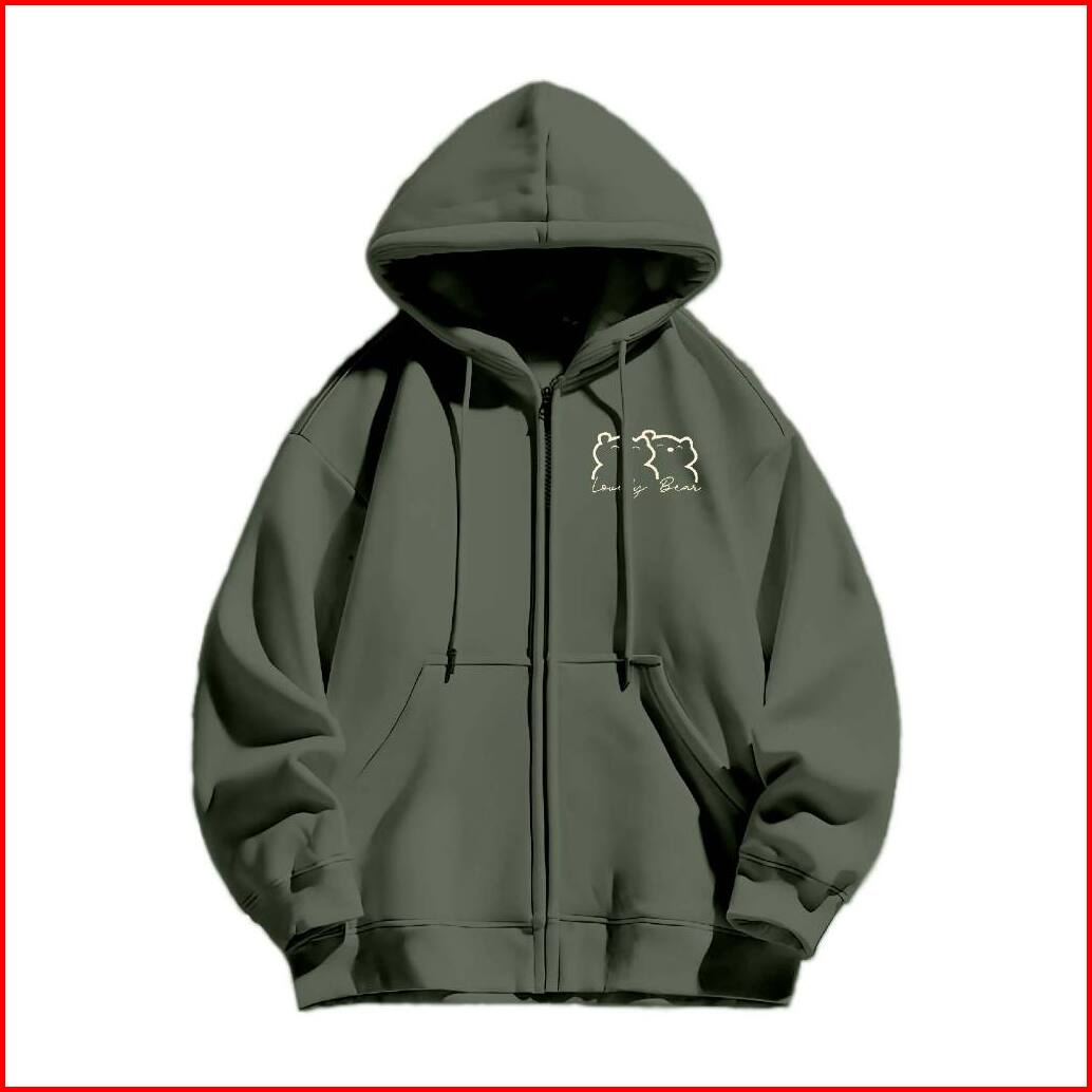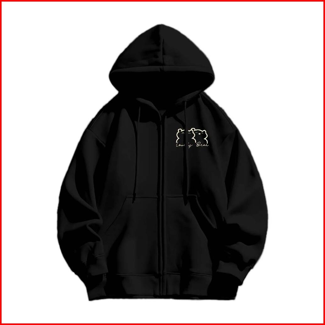 Hoodie Jaket Zipper Jyb Oversize Lovely Bear Sablon Size M-xxl Pria Wanita