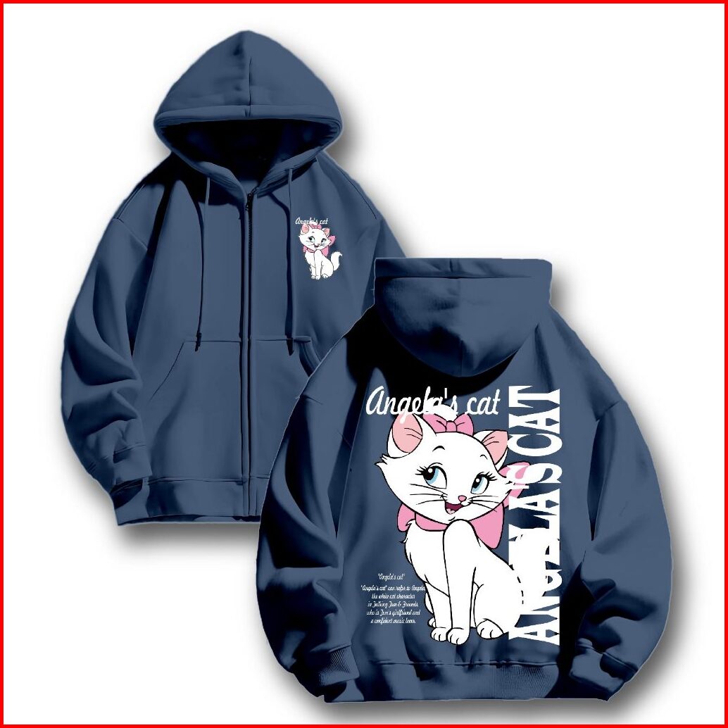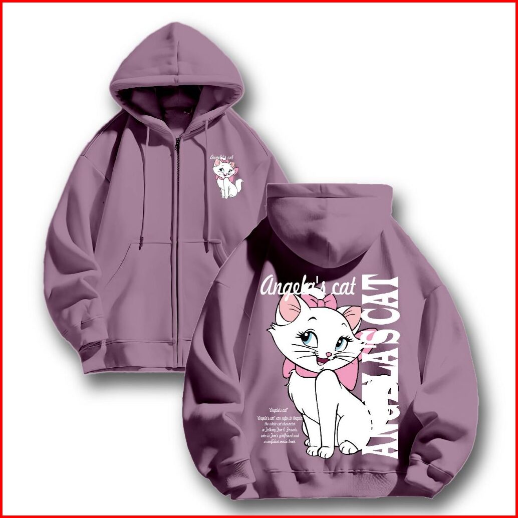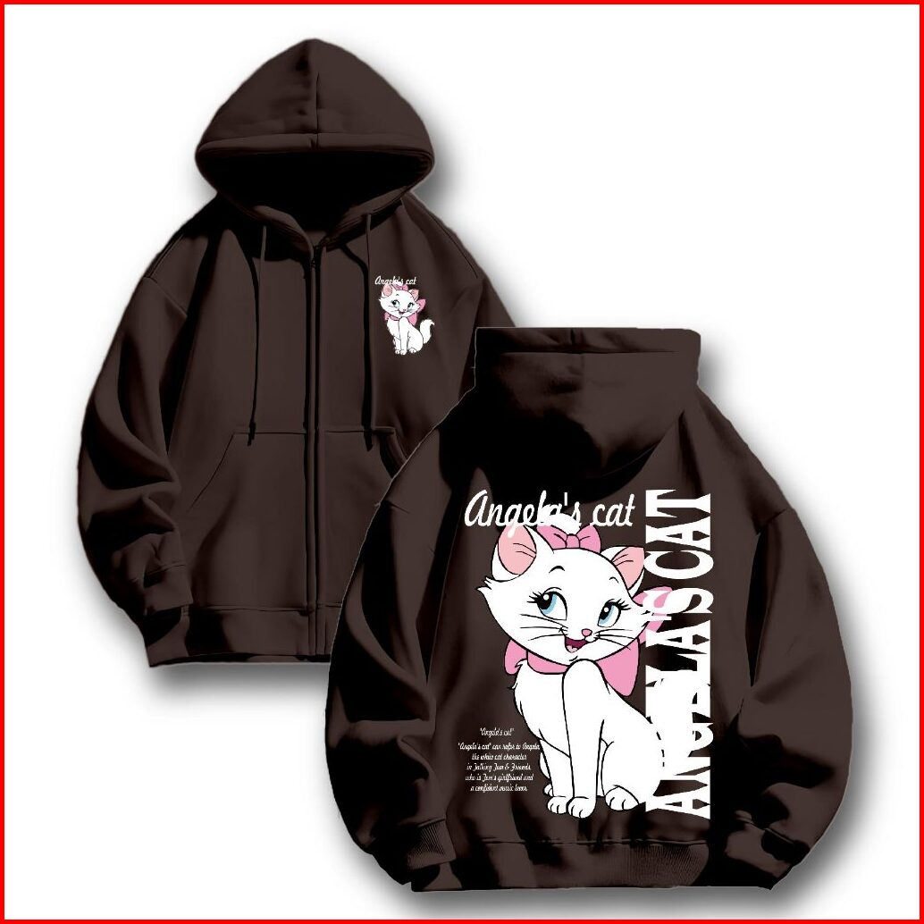 Hoodie Jaket Zipper Jyb Oversize Angela S Cat Sablon Size M-xxl Pria Wanita