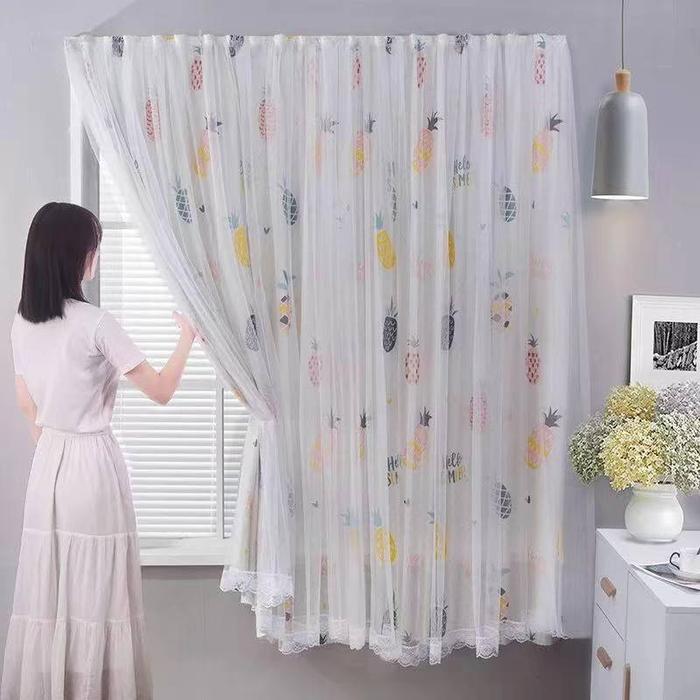 Tirai Hordeng Jendela Gorden Magic Tanpa Paku Pemasangan Gampang Gorden Hijau Pink Pintu - Green Alpukat, 1Mx1.5M