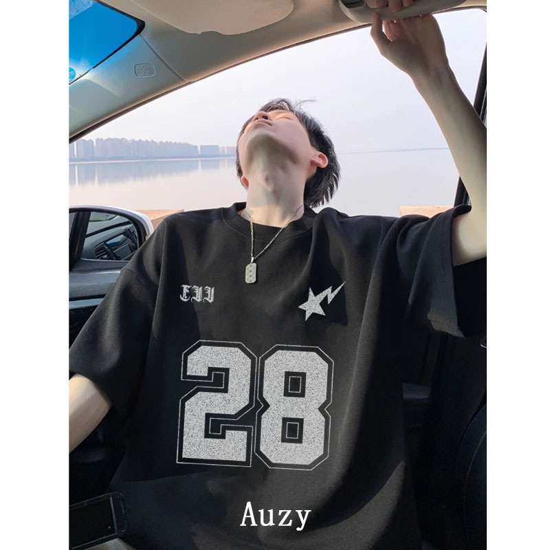 AUZY No. 28 Jersey Retro Amerika olahraga kaos pria wanita atasan Lengan Pendek T-shirt skena baju oversize t shirt distro original 100 PERSEN