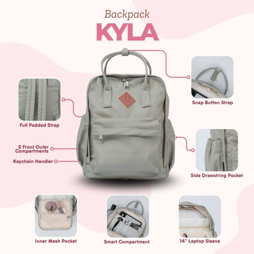 Backpack Kyla – Tas Ransel Laptop Tablet 12/14 Inch, Waterproof, Ykk, Tas Wanita, Tas Sekolah Cewek