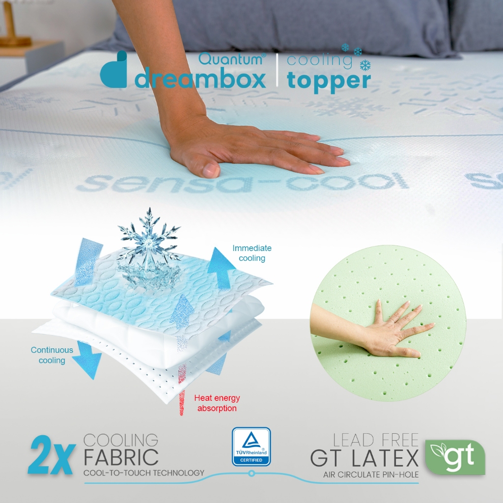 Topper Kasur Dingin Quantum Dreambox SensaCool | Greentea Latex | Cooling Mattress Topper kasur busa kasur nyaman