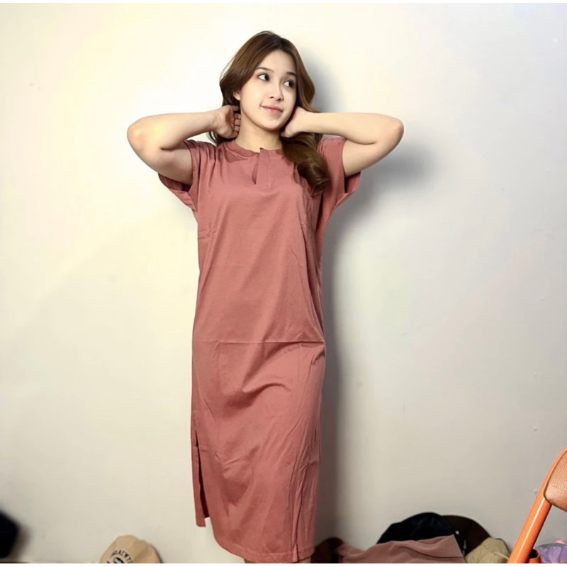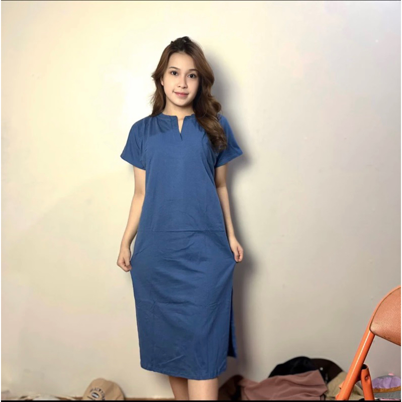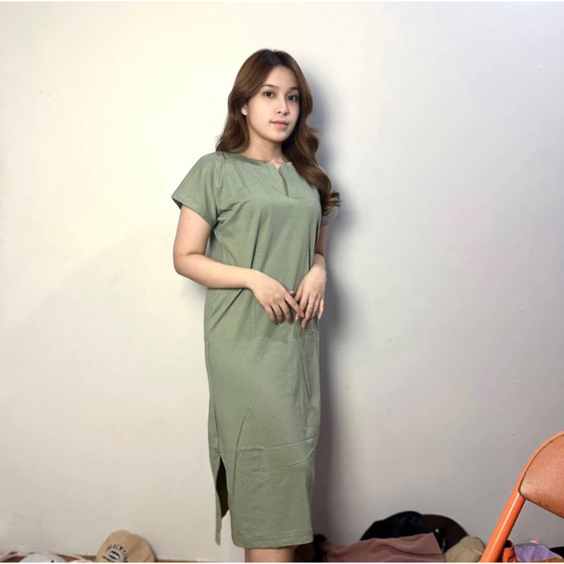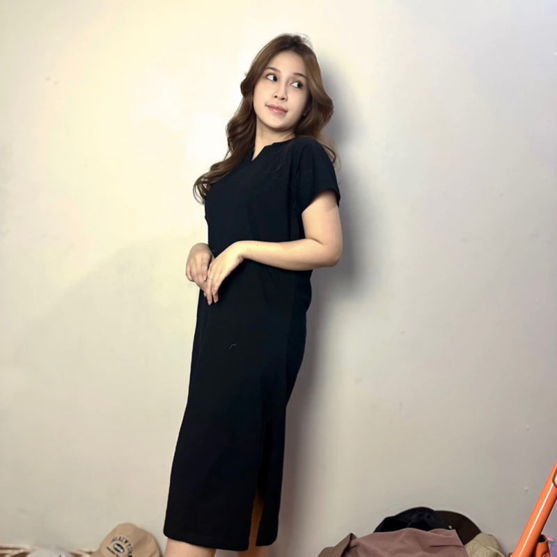 Dress V Neck Loose Midi Belah Samping Terbaru