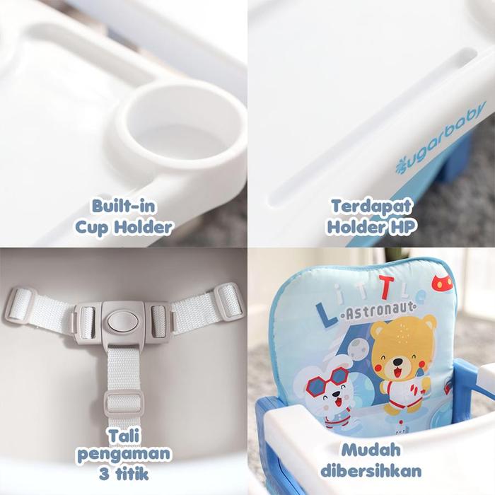 SUGARBABY BOOSTER CHAIR SIT ON ME 4 IN 1 FOLDABLE BOOSTER SEAT PERLENGKAPAN MPASI KURSI MAKAN LIPAT BABY - KADO ANAK BAYI BLUE PINK - LITTLEASTRONAUT, STANDARD