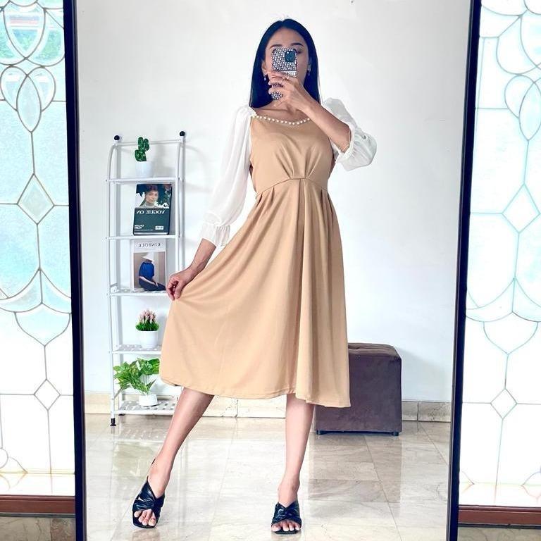 Ilook | Dress Vinel Scuba Korean Style Dress Midi Casual