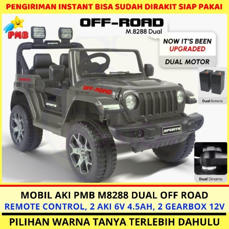 Mobil Aki Remote Control Jeep Rubicon PMB M 8288 Off Road Mainan Anak Mobil Aki PMB M8288 Dual 2 Aki 2 Gearbox Dinamo Be