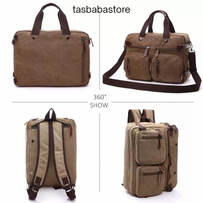 TAS RANSEL PRIA BACKPACK LAPTOP KANVAS MULTIFUNGSI SELEMPANG JINJING - HITAM