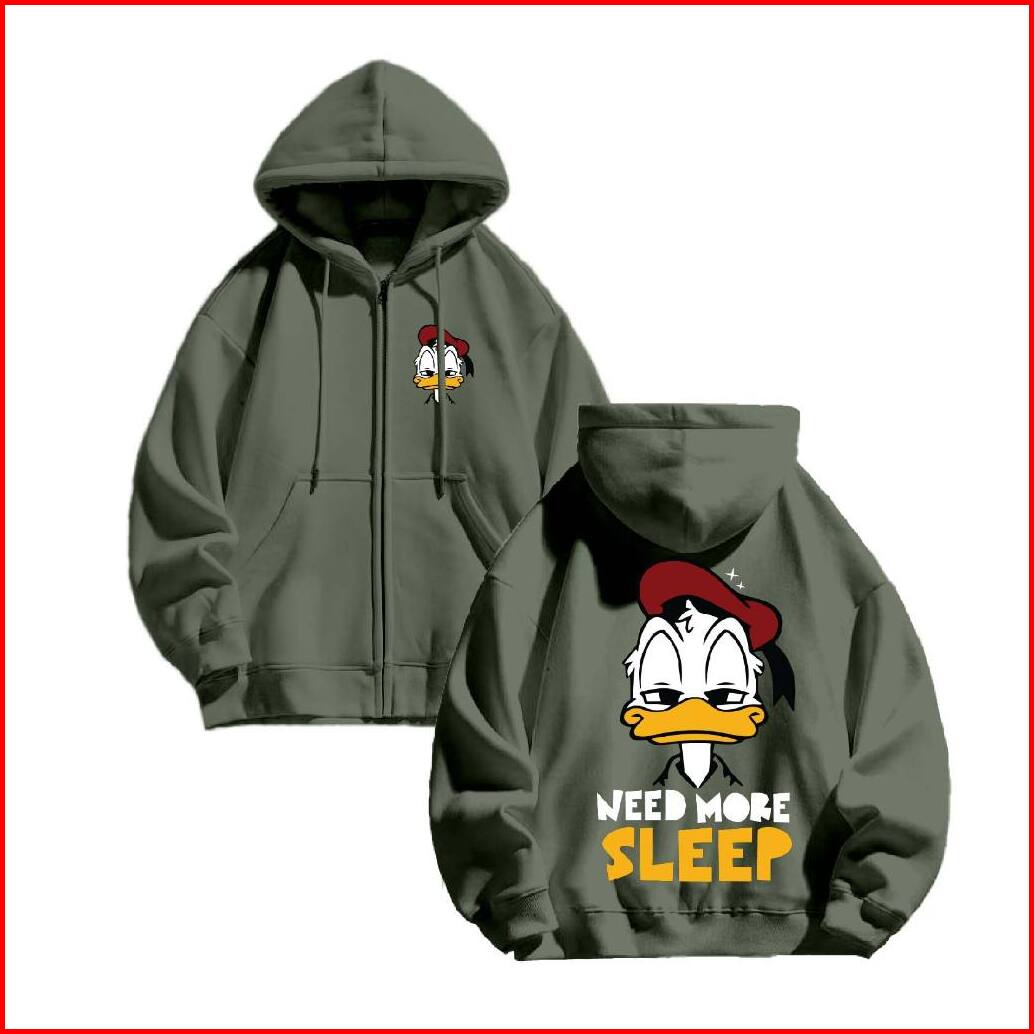Hoodie Jaket Zipper Jyb Oversize Sleep Duck Sablon Size M-xxl Pria Wanita