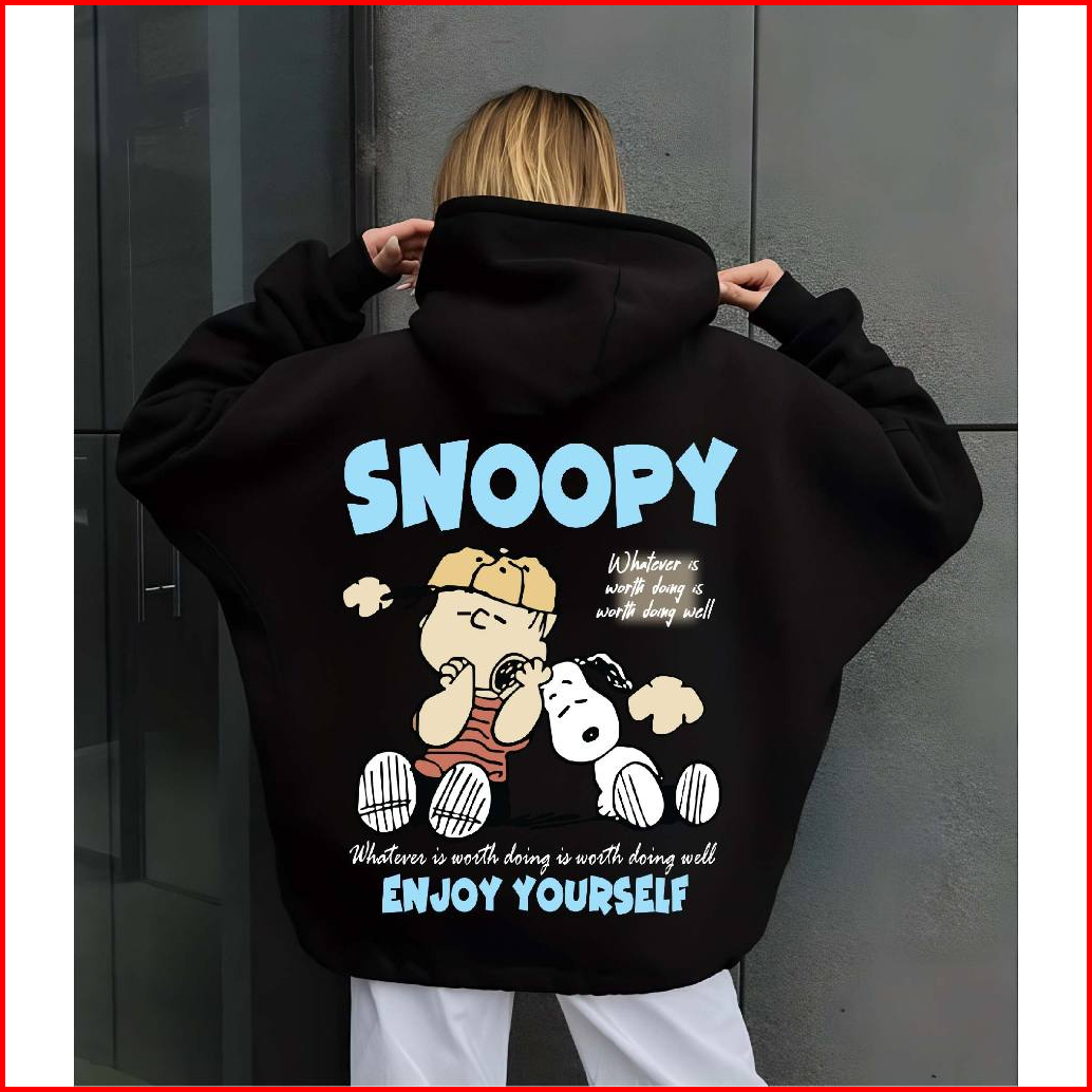 Hoodie Jumper Jyb Oversize Snoopy Enjoy Your Self Sablon Size M-xxl Pria Wanita