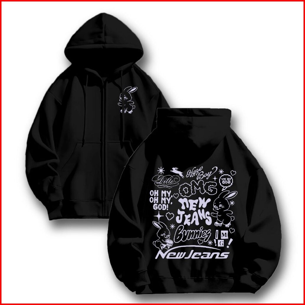 Hoodie Jaketwanita Zipper Jyb Oversize Bunnies New Jeans Sablon Size M-xxl Pria Wanita