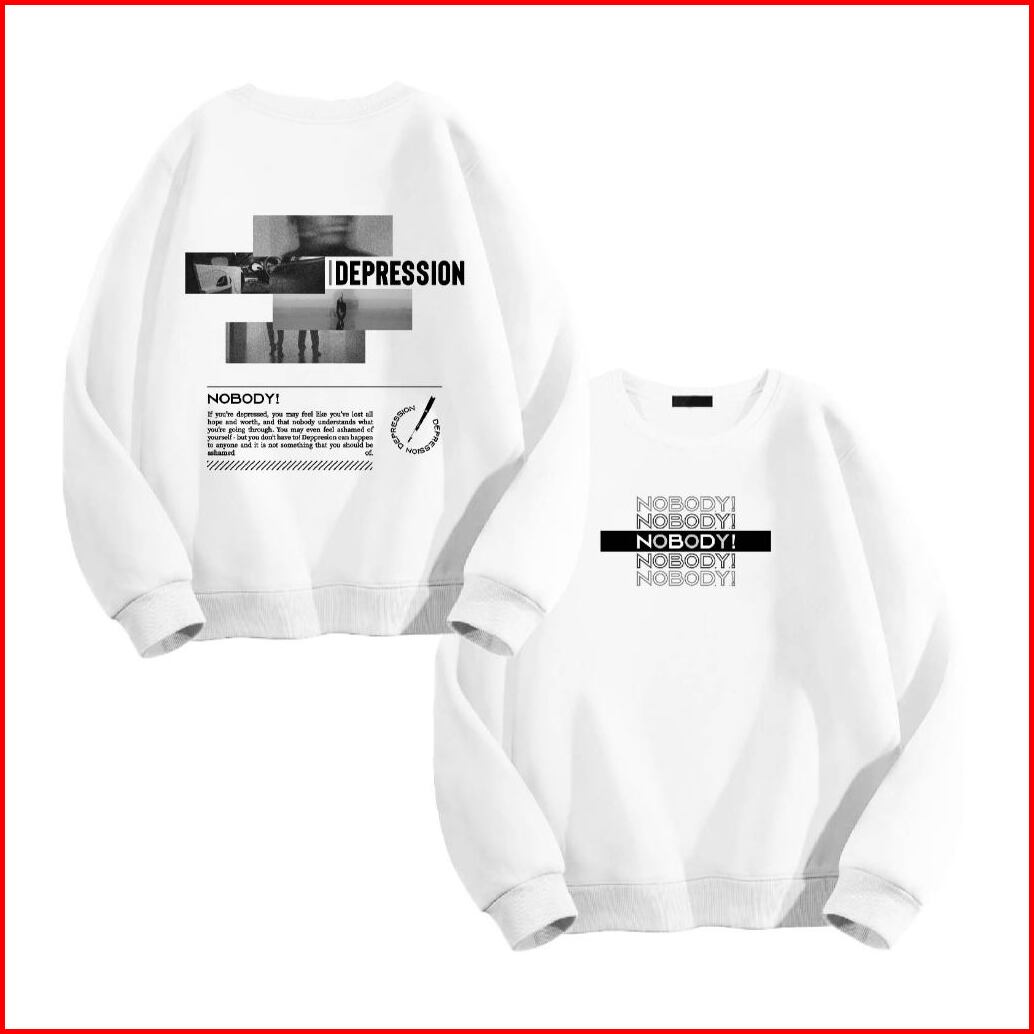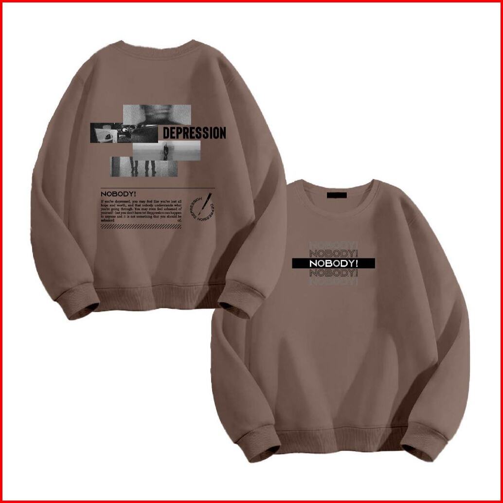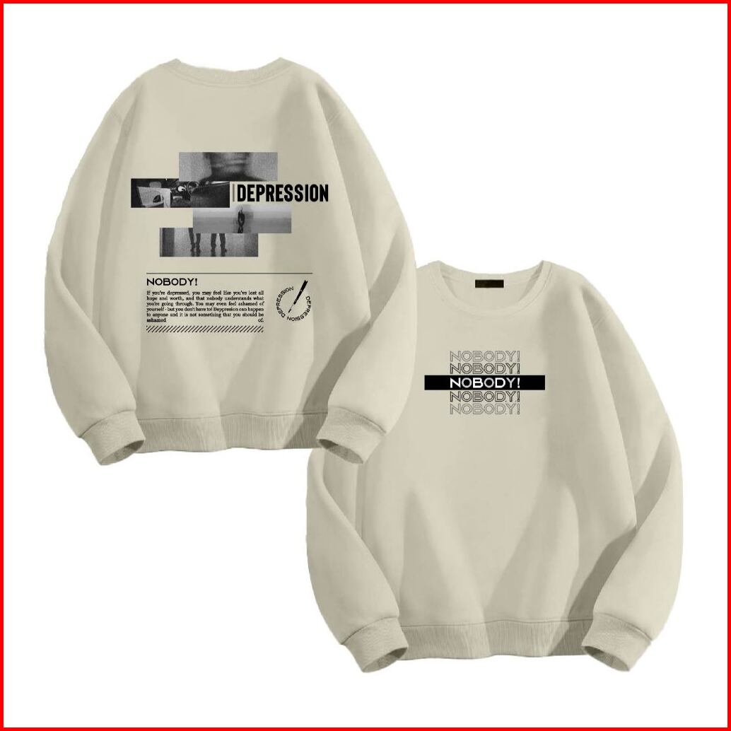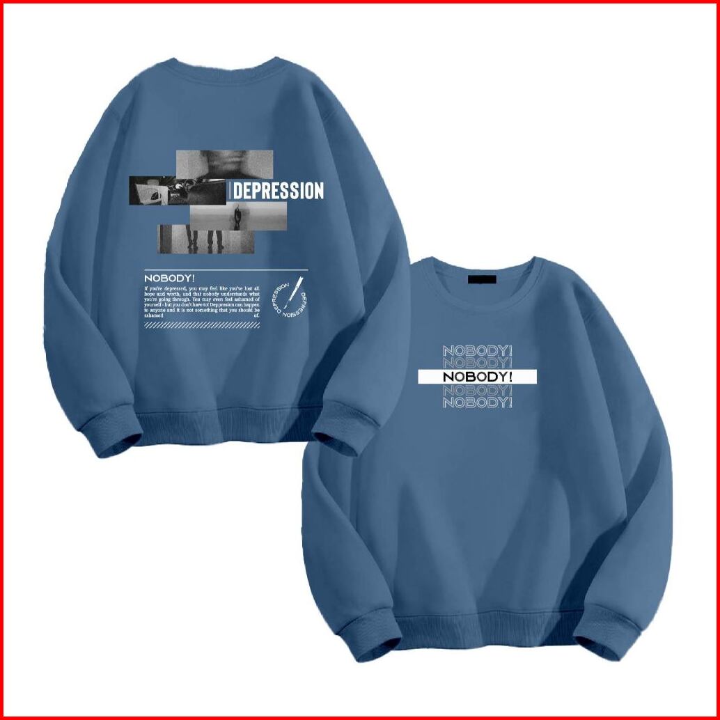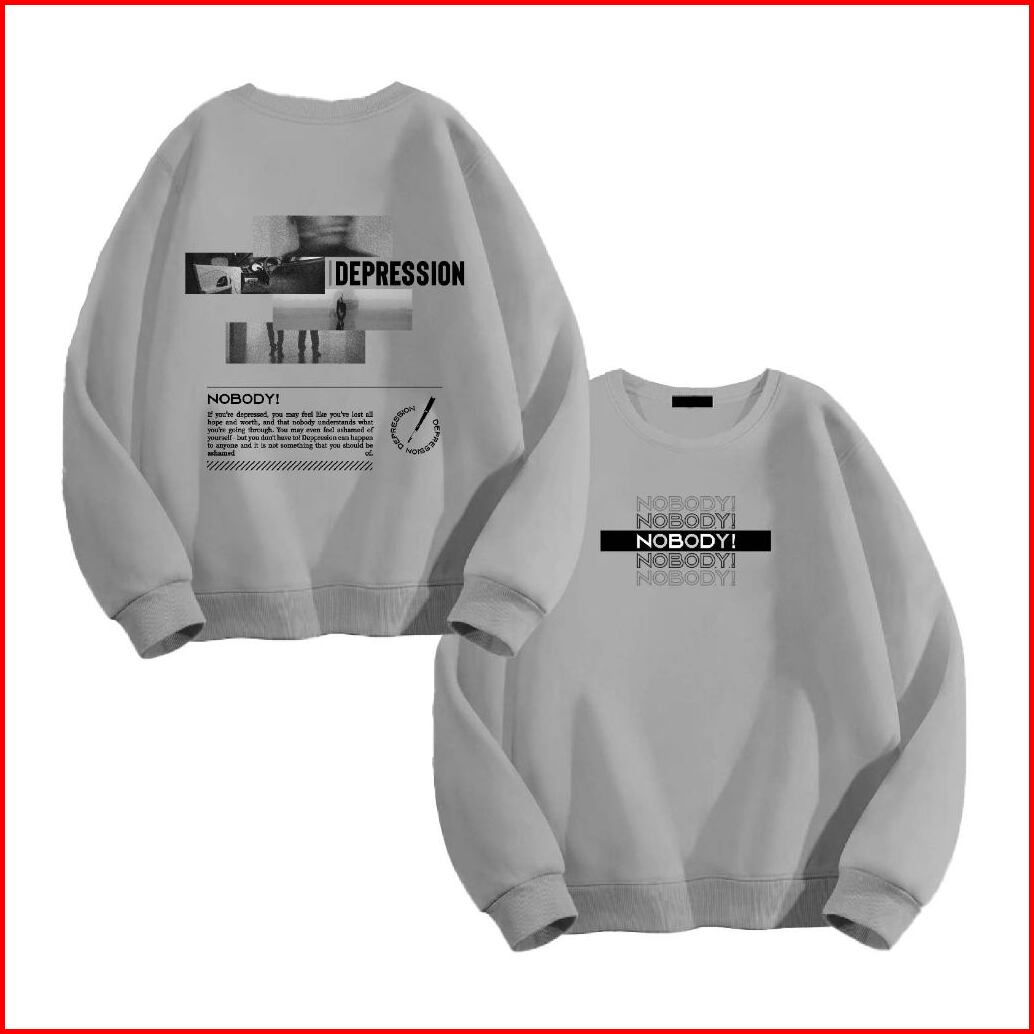 Kotasweater Basic Sweater Depression Sablon Depan Belakang Size M-xxl Pria Wanita