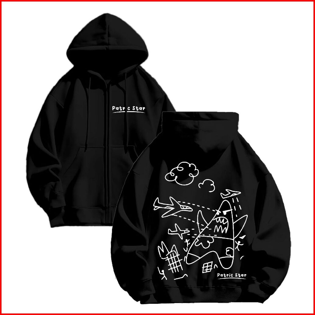 Hoodie Jaket Zipper Jyb Oversize Patric Angry Sablon Size M-xxl Pria Wanita