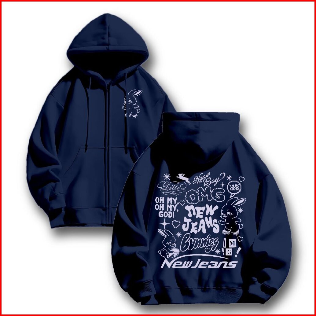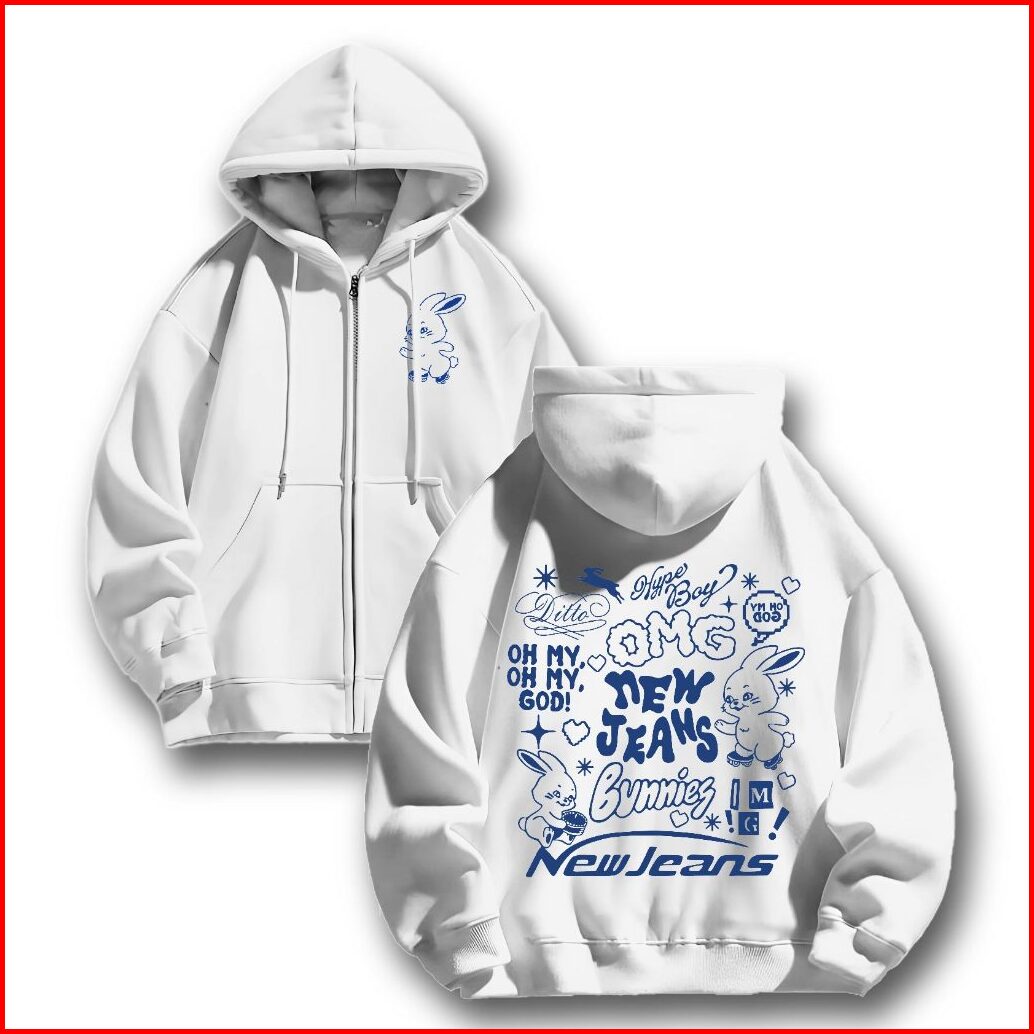 Hoodie Zipper Jaket Sweclo.id Oversize Bunnies New Jeans Sablon M-xxl Pria Wanita 280gsm