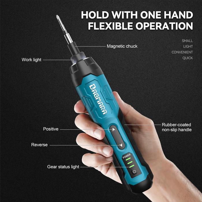 DAGMARA RECHARGEABLE 3.6V CORDLESS SCREWDRIVER WITH CIRCUIT SENSOR TECHNOLOGY INCLUDES 30PCS BIT SET, USB CHARGING CABLE