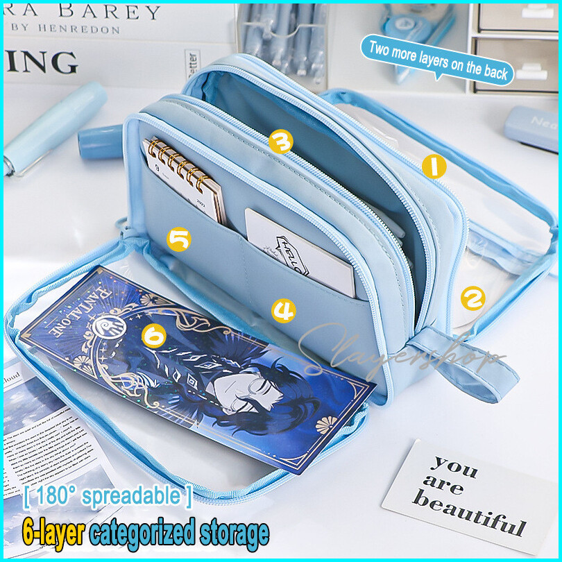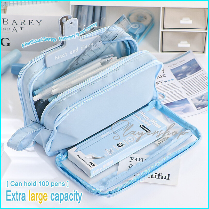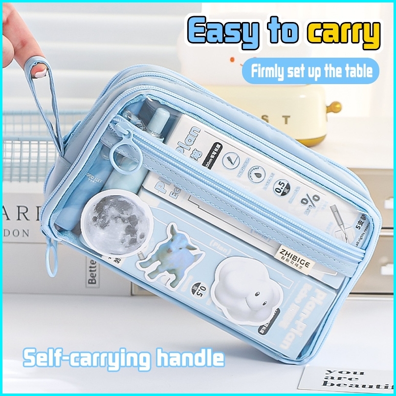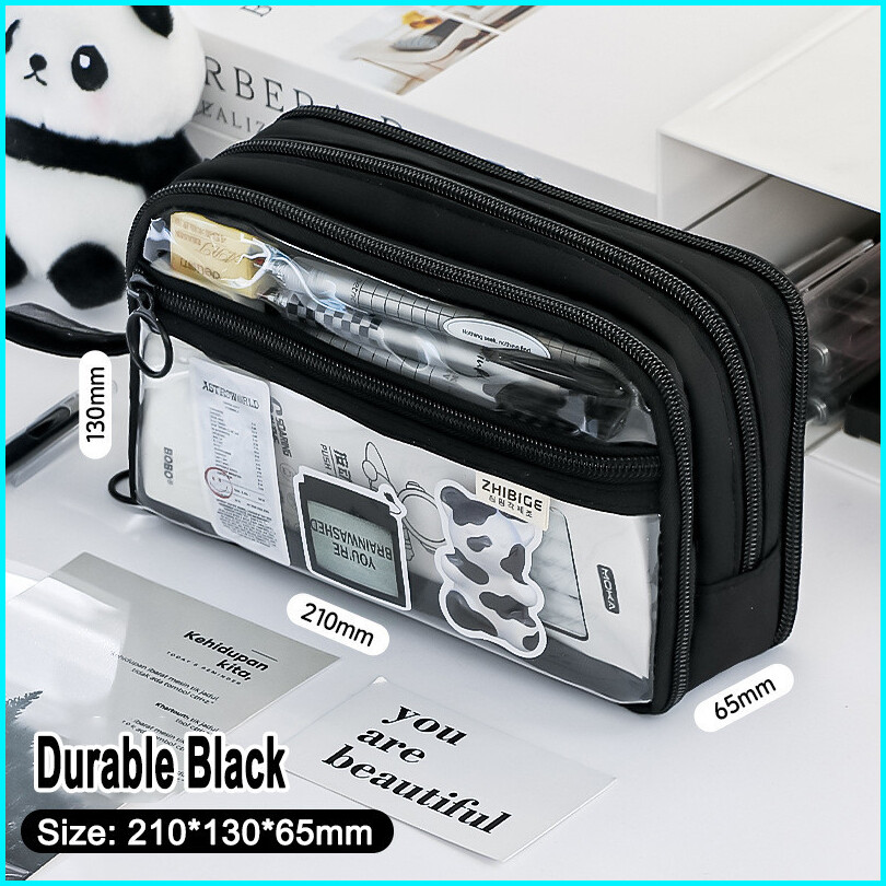Kotak Pensil Transparan Aesthetic Pencil Case Large Tempat Pensil Pen Pouch Lucu Stationery Organizer