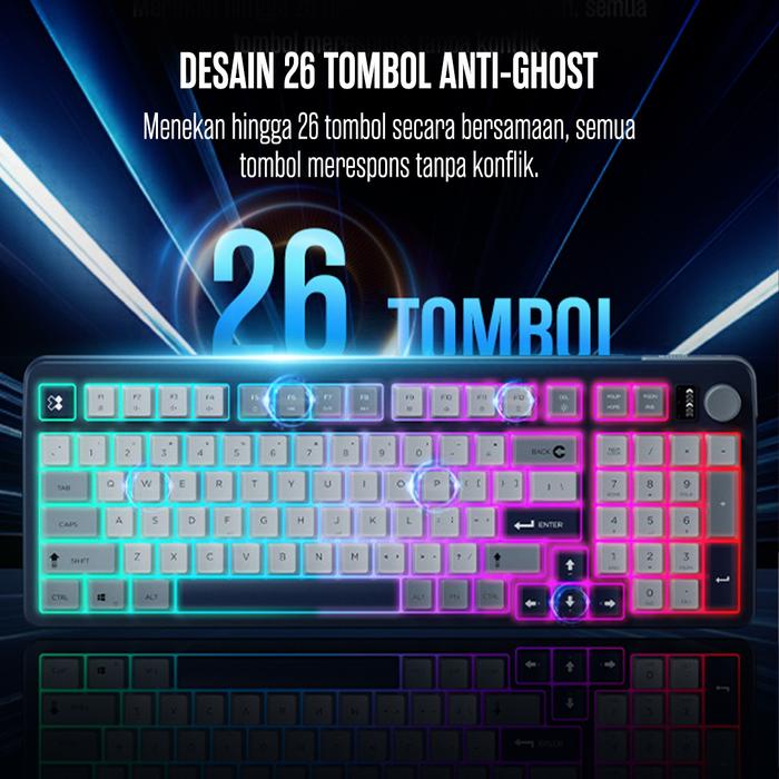 GAMEN GK300 KEYBOARD GAMING KABEL KEYCAPS MEMBRANE COMPUTER LAMPU RGB MULTIFUNCTION KNOB ANTI-GHOSTING - GARANSI 1 T