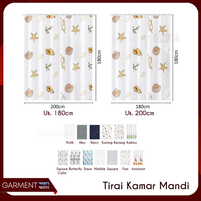 Tirai Kamar Mandi Gorden Anti Jamur Waterproof Motif Cantik Shower Curtain Bahan Peva Tebal Free Ring Pengait - Random