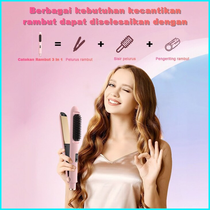 Uphome Catokan Rambut 3 In 1 Pelurus Pengeriting Sisir 80 -230 Pengaturan Tingkat Suhu Panas Hair Straightener Tampilan