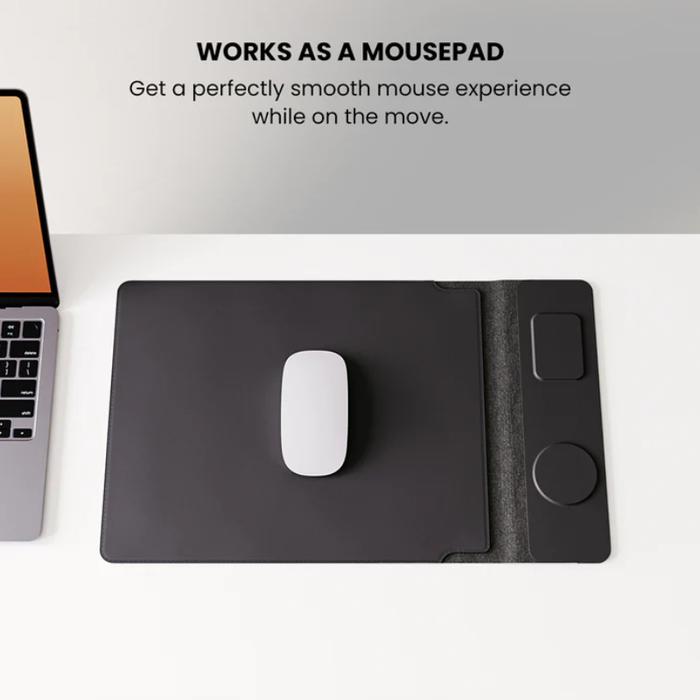 NOUZEN WIRELESS CHARGE LAPTOP SLEEVE - PU LEATHER 4 IN 1 LAPTOP SLEEVE WITH WIRELESS CHARGING DOCK IPHONE AIRPODS 15W -