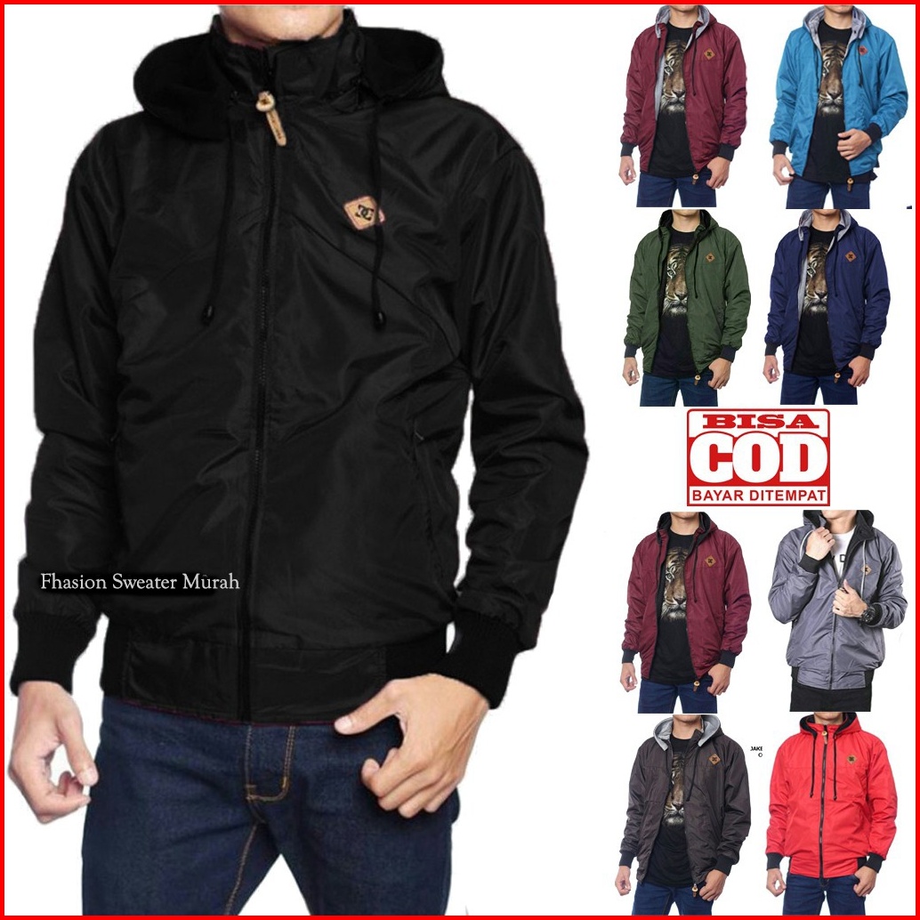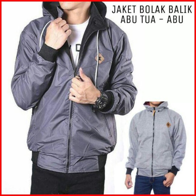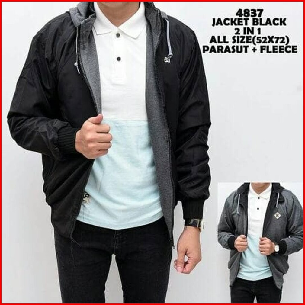 Jaket Bolak Balik Pria Bb 2in1 Parasut Anti Air Fleece Size M L Xl Xxl