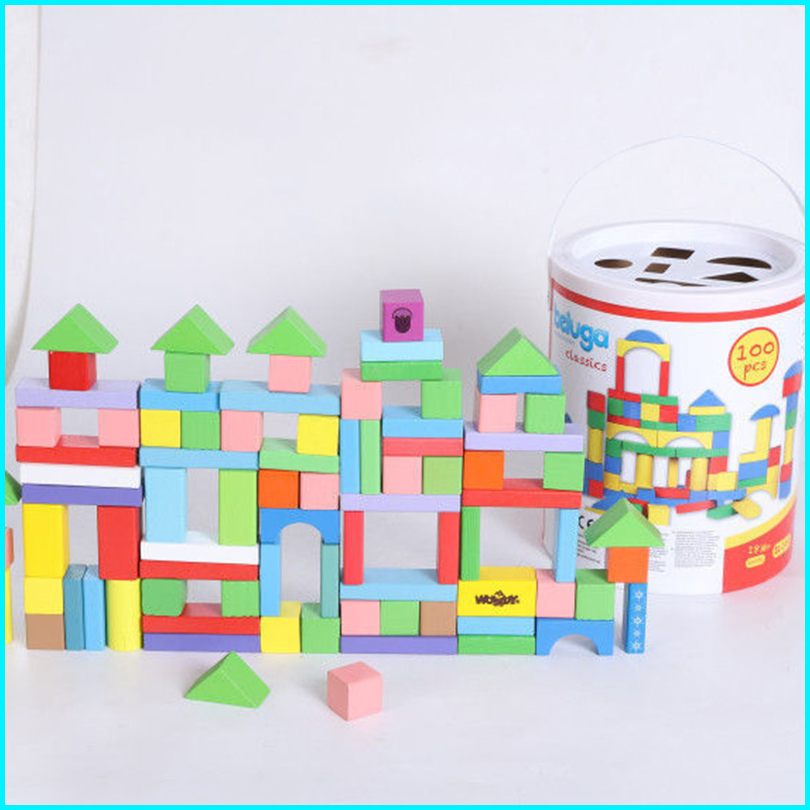 Mainan Balok Susun Kayu Besar 100pcs Mainan Edukasi Anak Wooden Block