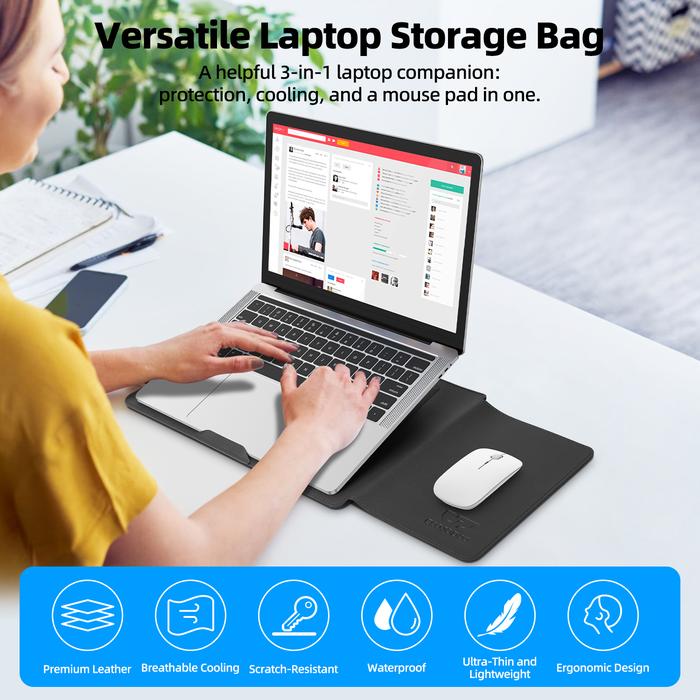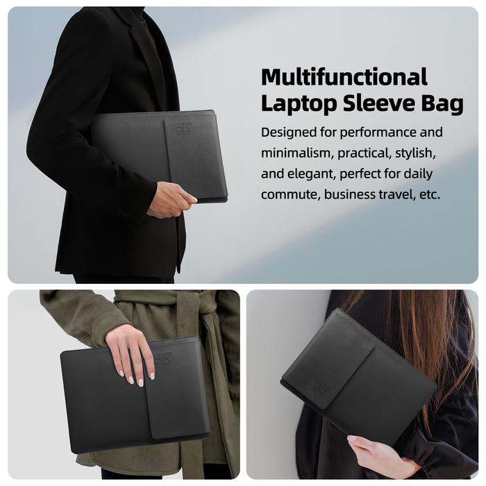 GOOJODOQ ERGONOMIC 2-IN-1 LAPTOP & TABLET MAGIC KEYBOARD PORTABLE WORK STATION LEATHER TRAVEL BAG 13.3"-16" - BLACK 14"