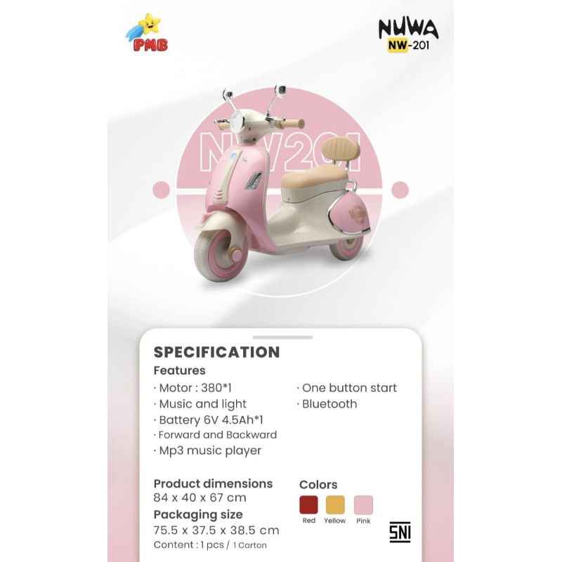 MAINAN ANAK MOTOR AKI PMB M 399 VESPA 6v 7ah / PMB NUWA NW 201