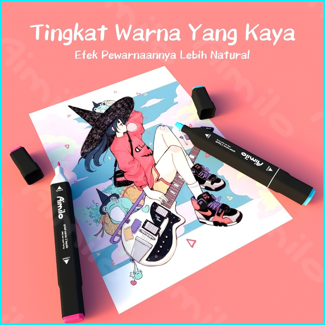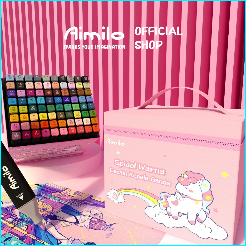 Ready Aimilo Spidol Warna Warni 1 Set Kemasan Kartun Sketch Marker 2 Tip Touch Marker 48 60 80 Warna