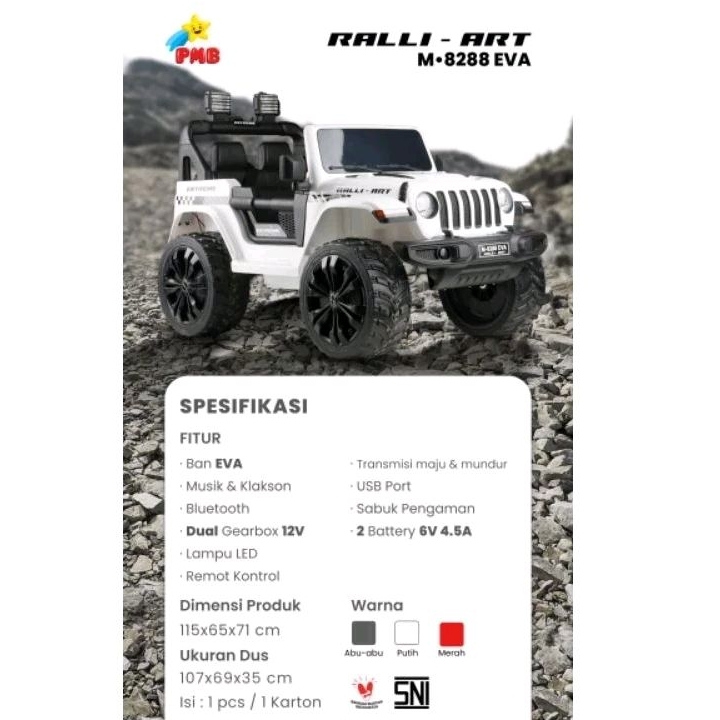 (FREE PELAPIS BAN /KARPET) MOBIL AKI MAINAN ANAK JEEP OFF-ROAD PMB M8288 / MOBIL AKI MAINAN ANAK JEEP OFF-ROAD PMB M-82