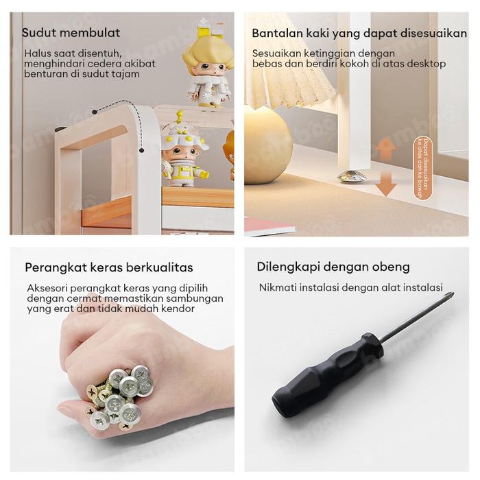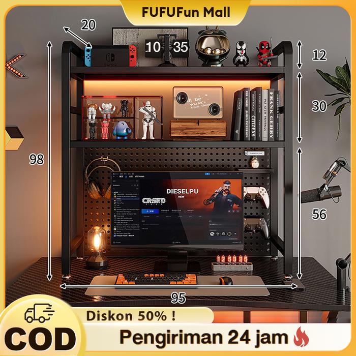 FUFUFUN 75/95CM RAK ORGANIZER DESKTOP DESK ORGANIZER RAK BUKU DESKTOP STORAGE RAK MEJA RAK BUKU GRID WIRE MESH BESI KAYU