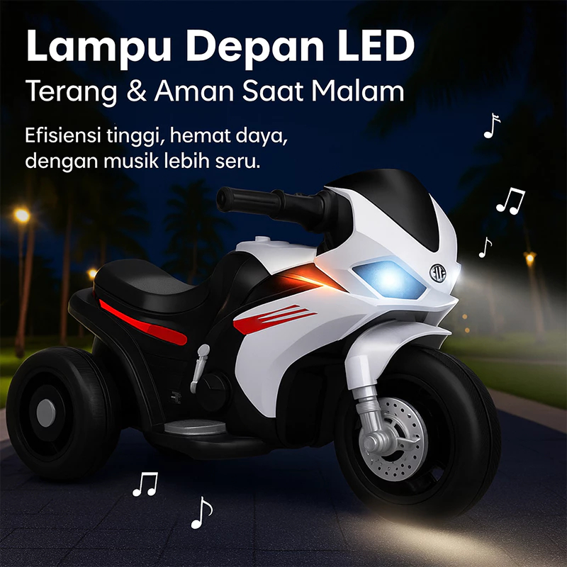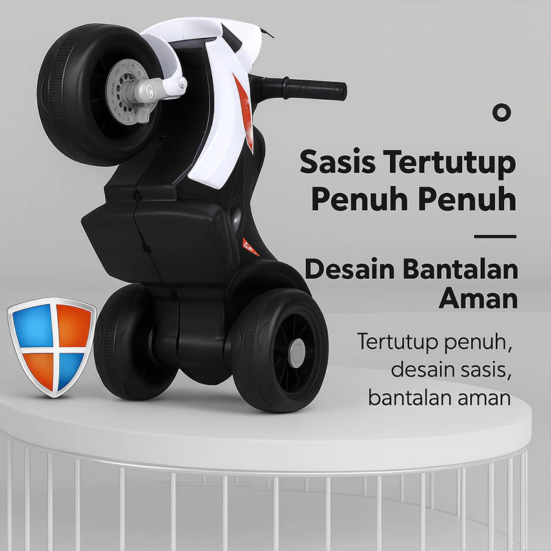 BEIGE Mobil Aki Anak Perempuan Anti Terbalik Tahan Benturan Dengan Lampu dan Musik Motor Anak