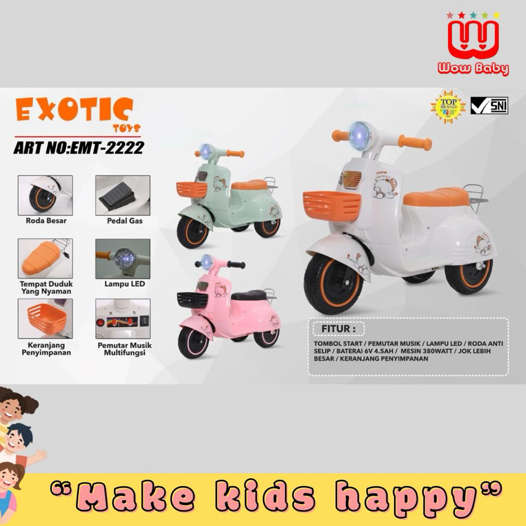 EXOTIC VESPA MOTOR AKI EMT-2243/ EMT-2222/ Emt 2242/ 2241 /2237/ 2214 Tolobike Motor Anak termurah mainan anak manual da
