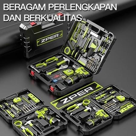 ZPER SET ALAT PERKAKAS & BOR BATERAI CORDLESS TANG OBENG PALU KUNCI PAS TOOLKIT 124 IN1 PCS ZP027 BOREK LASKAR PELANGI A