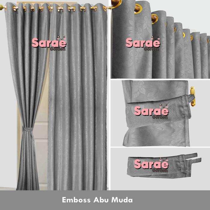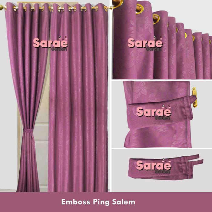 Gorden Pintu Minimalis Emboss - Hordeng Pintu - Hordeng Jendela - Tirai - Gorden Pink Salem - Abu Muda, 115X100