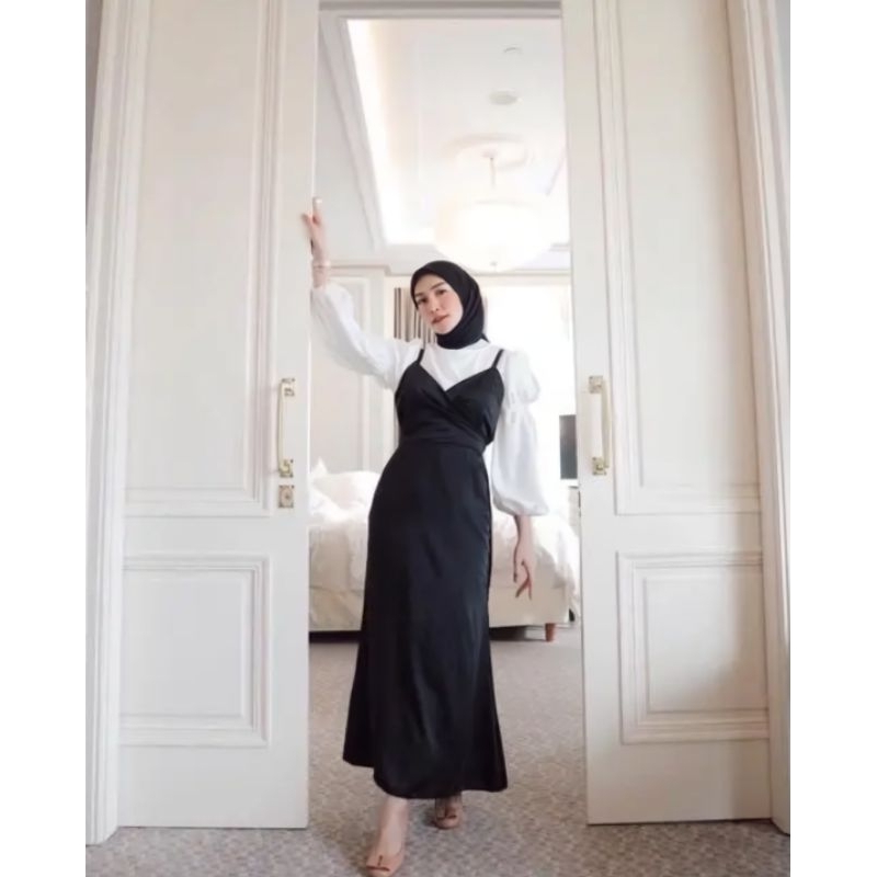Long Dress Satin Silk Kimono Tali Kecil Dress Korean Style Party Dress Satin Kondangan Velvet Kekinian