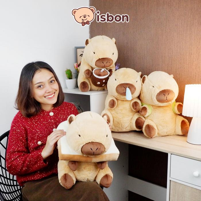 Istana Boneka Berang Berang Sit Capybara 14In Lucu Mainan Anak Hadiah Ulang Tahun Cowok Cewek Squishy Premium - With Bre