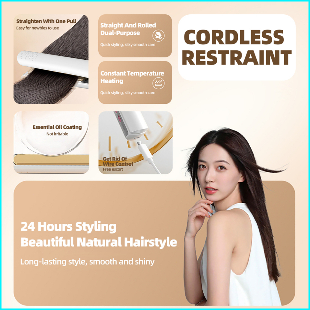 Ckeyin Catokan Rambut 2 In 1 Tanpa Kabel Hair Straightener Cordless Alat Catok Rambut Nirkable 18mm