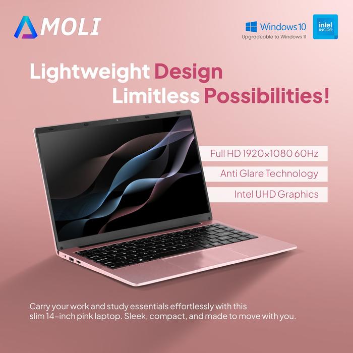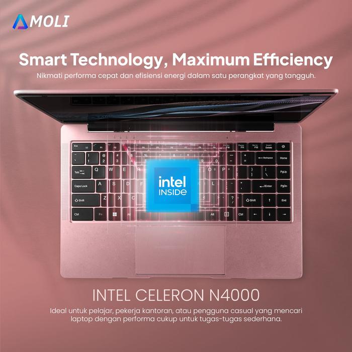AMOLI LAPTOP 14 INCH INTEL N4000 NON FINGER PRINT RAM 8G+256GB SSD WINDOWS11+OFFICE+BONUS+GARANSI SATU TAHUN - silver(V