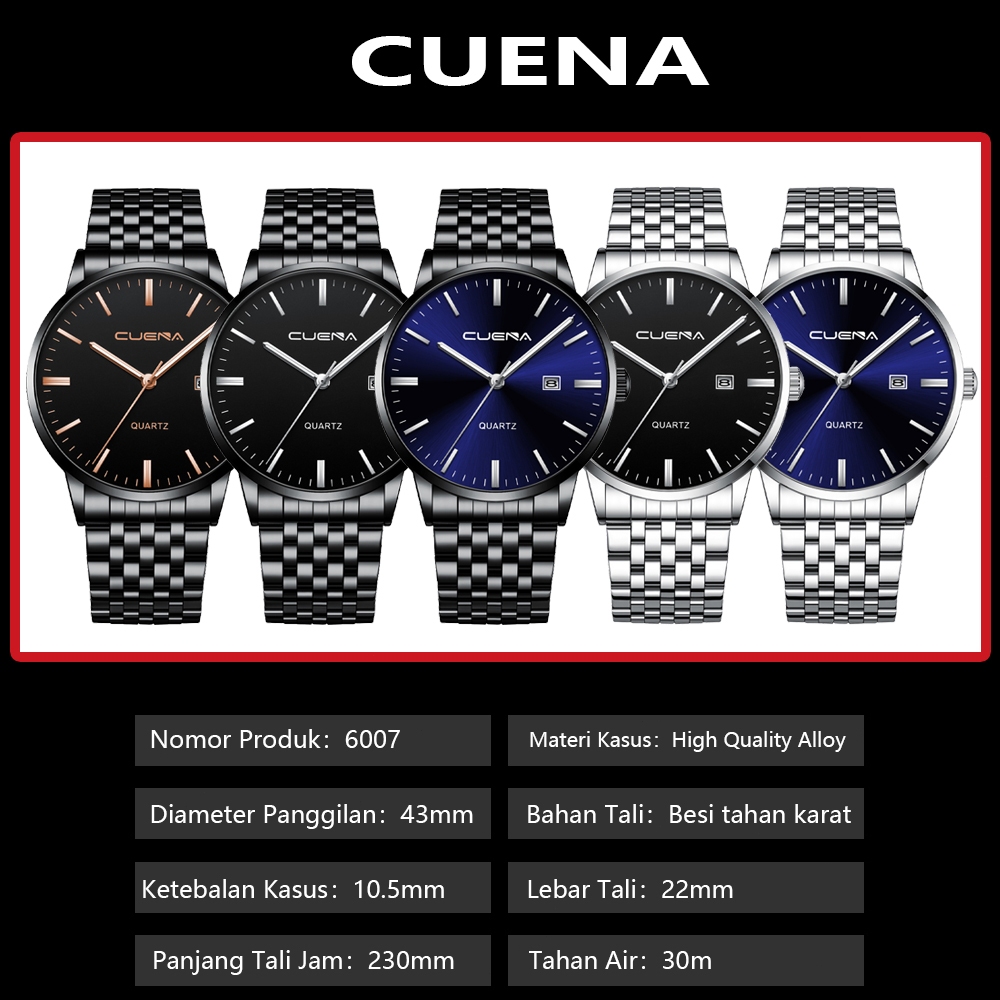 Cuena Kasual Olahraga Jam Tangan Pria Stainless Steel Band Jam Tangan Sederhana Dial Jam Kuarsa Dengan Bercahaya Pointer