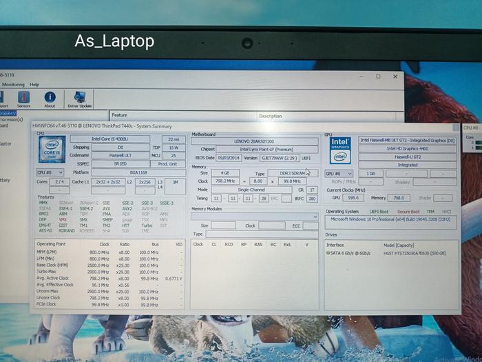 LAPTOP LENOVO THINKPAD T440 CORE I5/I7 RAM 4/8GB|LAYAR 14"|SSD 256GB - T440S I5 GEN4, RAM4GB SSD128
