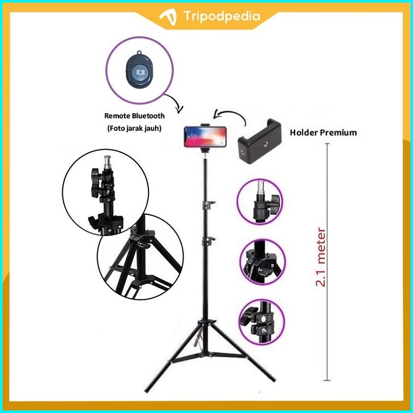 Paket Komplit Tripod 2.1m Mini Ball Head Ball Holder Premium Holder E Tomsis 1 Tombol
