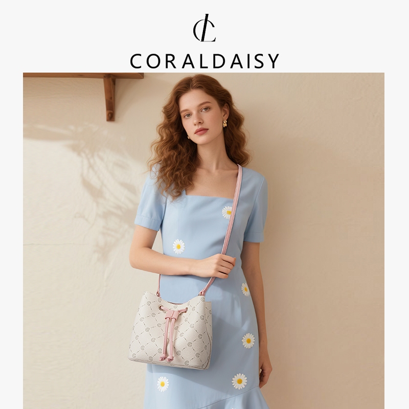 Coraldaisy Tas Wanita 2025 Terbaru Serut Handbag Elegan Lucu Ember Tas Tangan Tali Panjang Shoulder Bag
