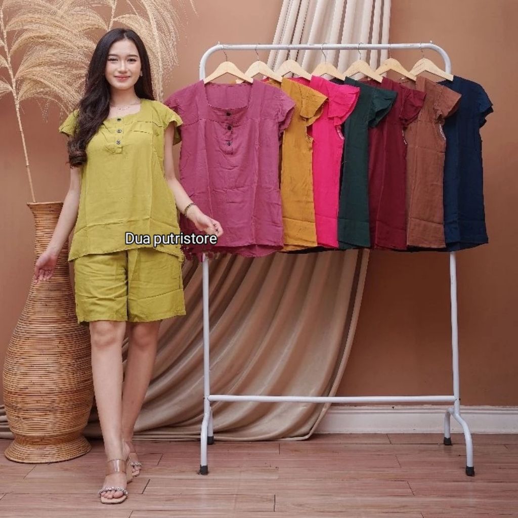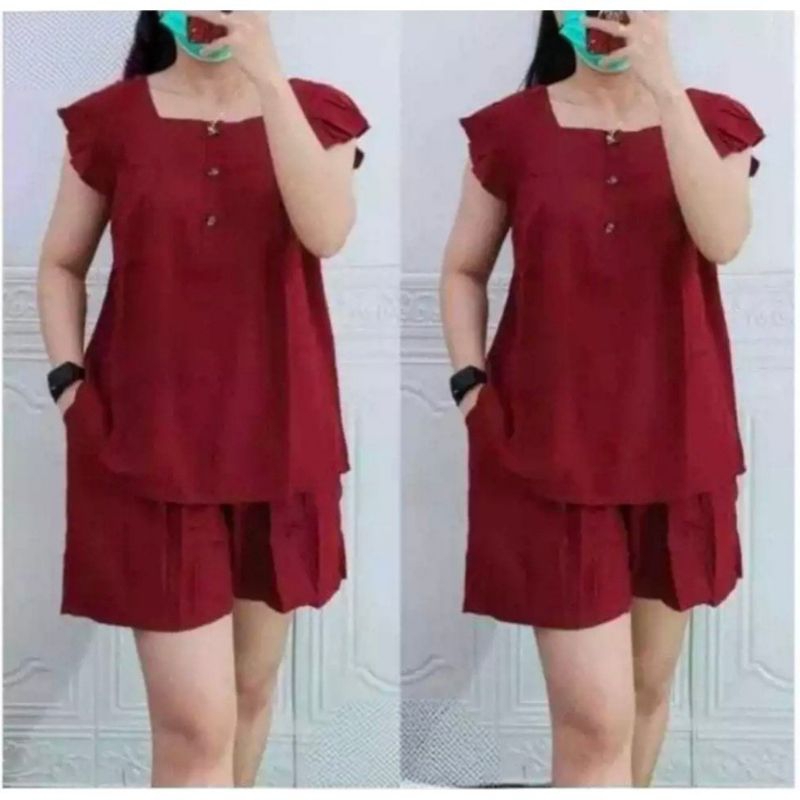 Setelan Bangkok Celana Pendek Wanita Kekinian termurah//onset wanita kancing depan busui friendly