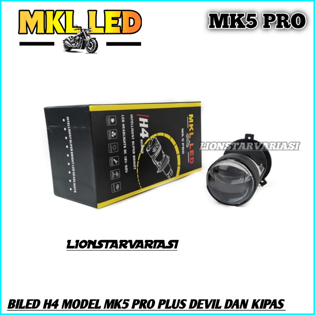 Mk5 Pro Lampu Utama Led H4 Biled Projector Plus Devil Dan Kipas Pendingin Universal Mobil Motor