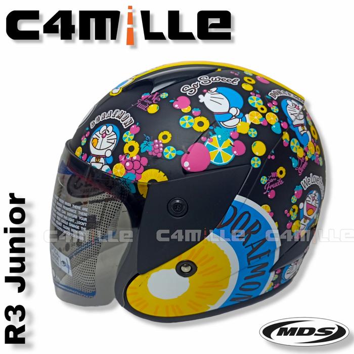 HELM MDS R3 JR DORAEMON FRUITY #2 BLACK DOFF HALF FACE ANAK