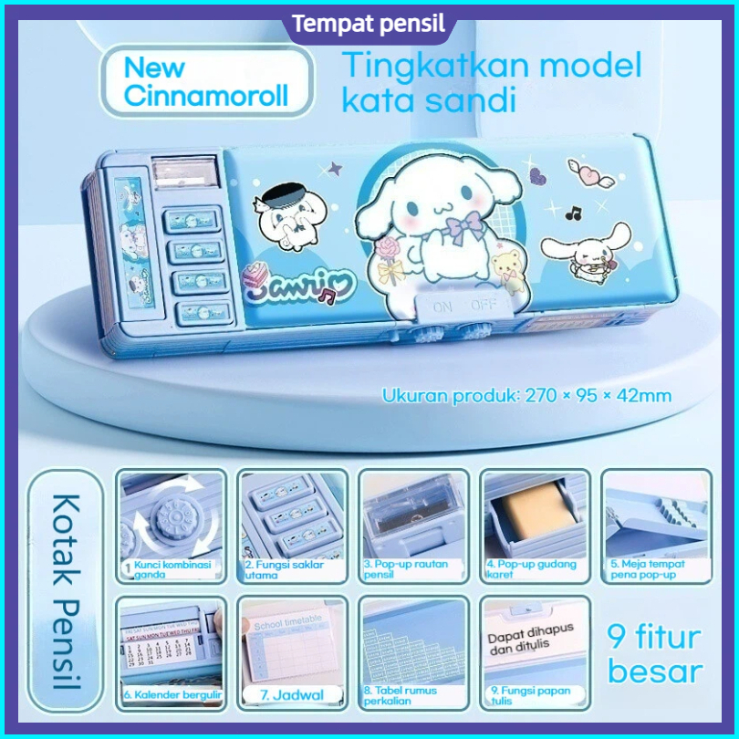 Kotak Alat Tulis Multifungsi Kuromi Untuk Anak Perempuan 2025 Kotak Pensil Otomatis Baru Kata Sandi Kompartemen Mesin Ko